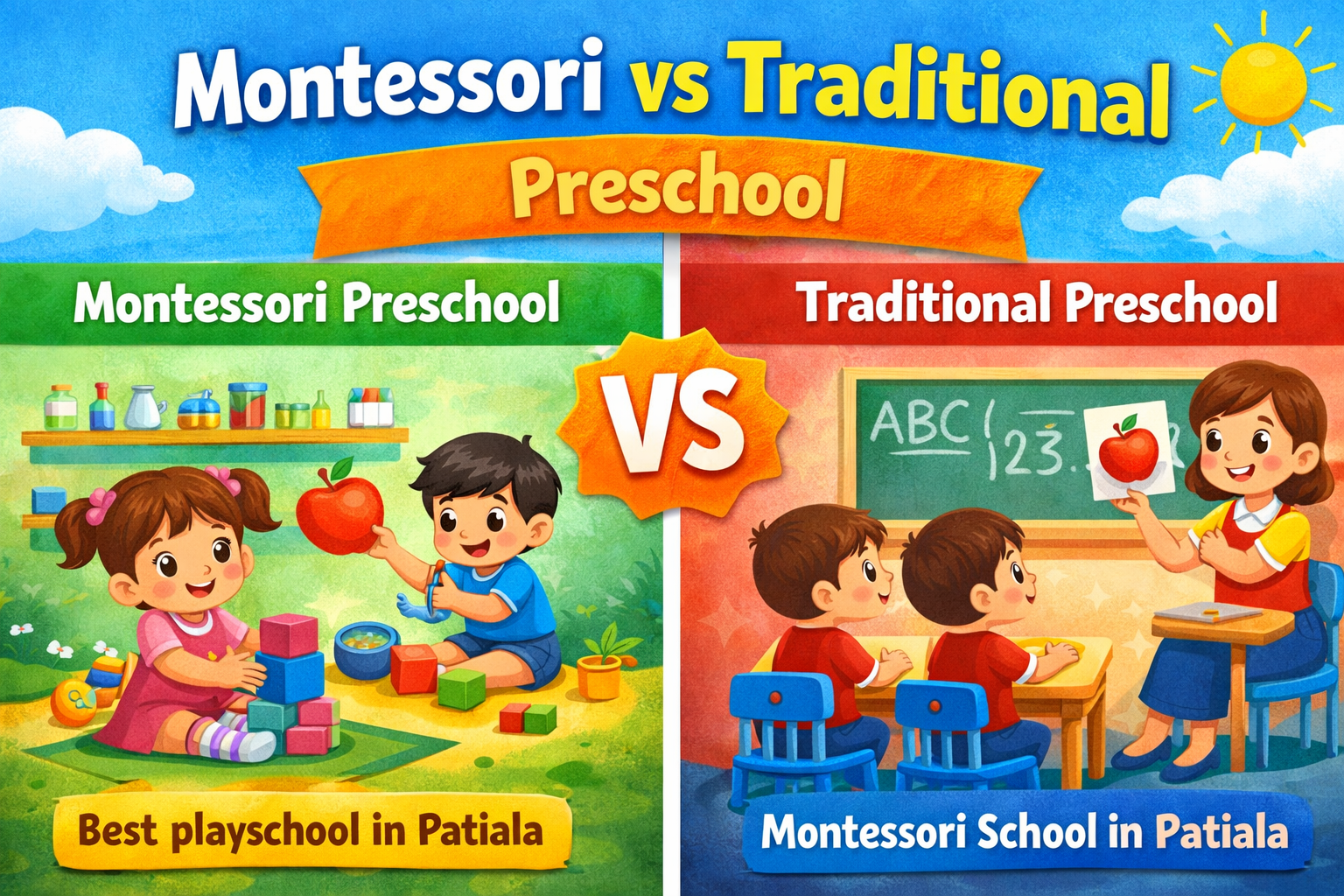 Choosing the right preschool is not easy for parents. Many people get confused between Montessori and traditional preschool. Both are good, but they are different in teaching style.